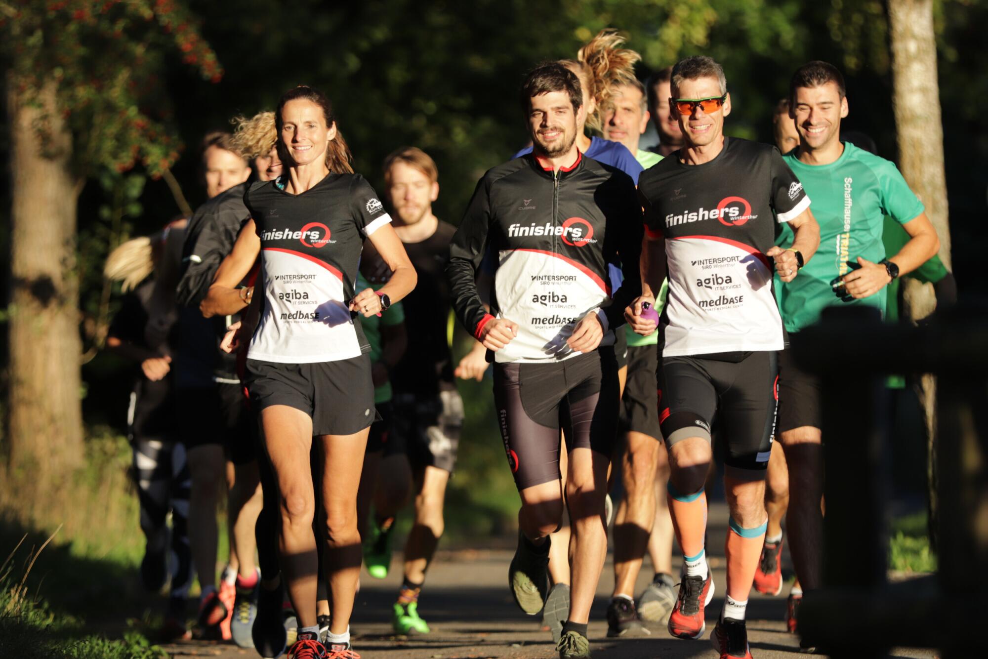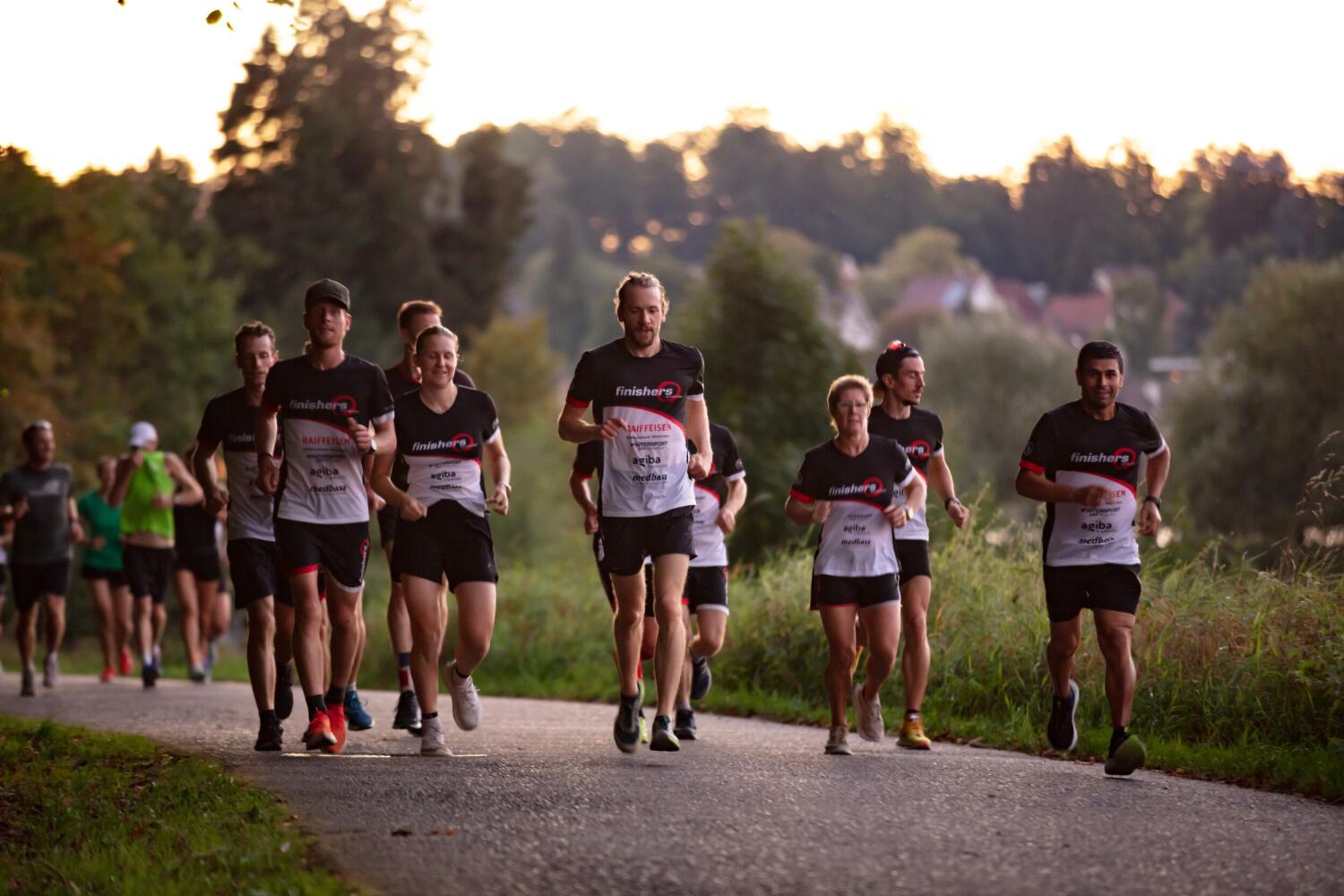 Wir laufen jeden Dienstag- und Donnerstagabend in den verschiedenen Laufgruppen der finishers und dies bei jedem Wetter, auch bei Dunkelheit, bereits seit über 20 Jahren.