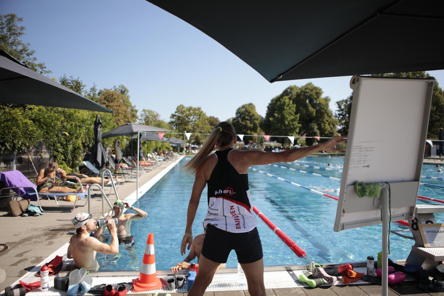 Mit dem Hinblick auf die Wettkampfsaison im Sommer üben wir für die Triathleten unter uns auch mal Wettkampfabläufe wie den Wasserausstieg, Open-Water Schwimmen oder das Wasserschattenschwimmen.